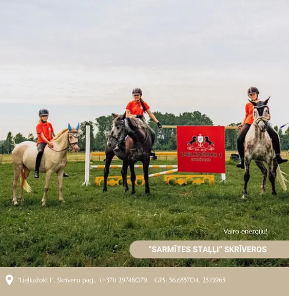 “Sarmītes staļļi” Skrīveros - ja vēlaties izmēģināt kādu jaunu hobiju un aktīvi pavadīt brīvdienas, “Sarmītes staļļi” piedāvā izjādes un fotosesijas ar zirgiem gan bērniem, gan pieaugušajiem, kā arī jauno jātnieku apmācības un jāšanas pamatiemaņu apgūšanu.