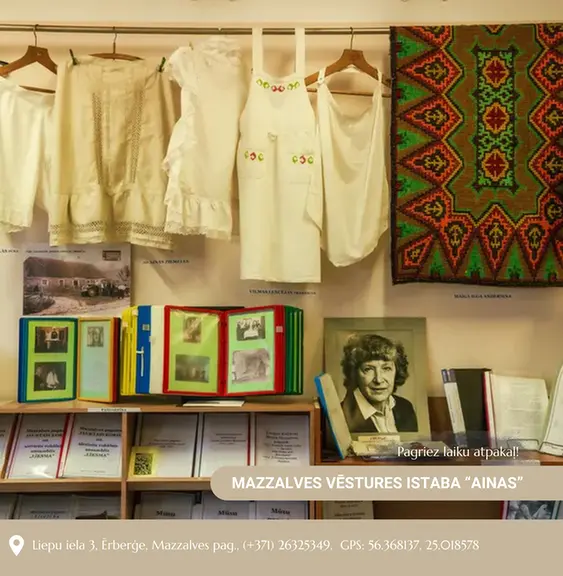 Vēstures materiāli izkārtoti 3 istabās. Apskatāms gaišreģa Eižena Finka sekretārs, Mārītes Grigānes dāvātā suvenīru - gotiņu kolekcija no visas pasaules un apmeklētāju vienmēr atzinību guvušie bijušie un esošie māju nosaukumi. Skatiet vēsturi savām acīm!