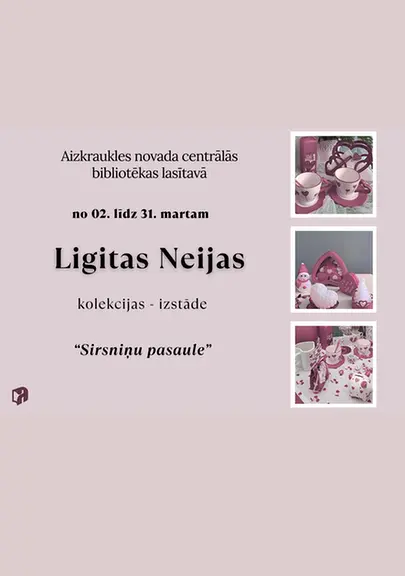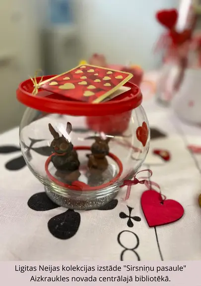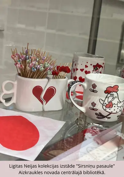Savukārt izstādē “Sirsniņu pasaule” apmeklētāji var iepazīt Ligitas Neijas gadiem veidoto kolekciju, kurā vienkopus apkopoti visdažādākie priekšmeti ar sirds motīvu.