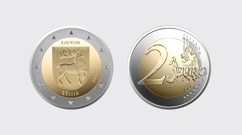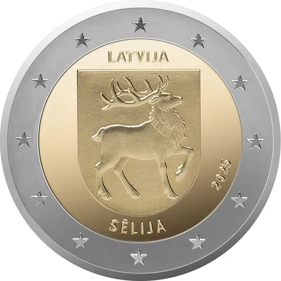 Latvijas Banka izdevusi īpaša dizaina 2 euro monētu, kas noslēdz piecu latviešu vēsturisko zemju piemiņas monētu sēriju. Monētas nacionālajā pusē attēlots Sēlijas ģerbonis – sudraba staltbriedis. Monētas grafiskā dizaina autors ir mākslinieks Laimonis Šēnbergs.
