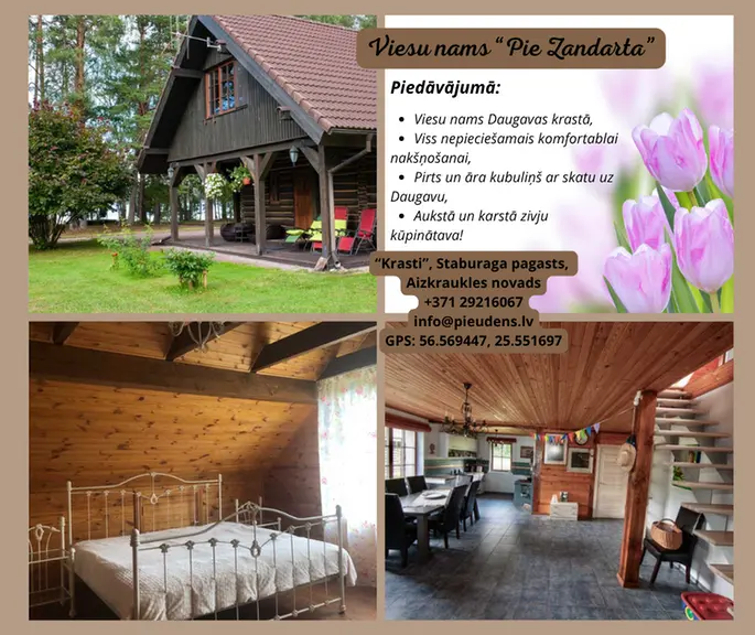 - Viesu nams “Pie Zandarta” – viesu nams Daugavas krastā. Piedāvājumā nakts mājas, pirts un papildus labsajūtai āra kubuliņš, no kura vērot Daugavas ledus vižņu rotaļas.