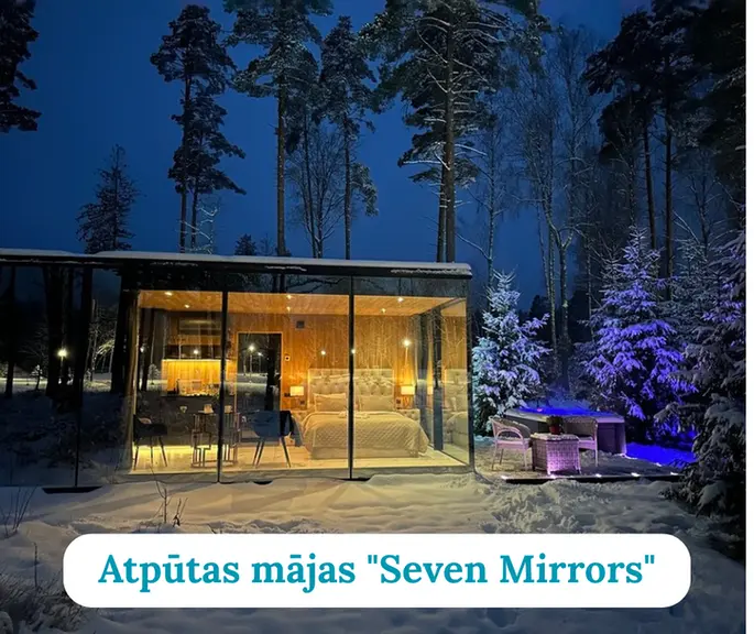 Seven Mirrors “Seven Mirrors” ir ideāla ziemas atpūtas vieta pāriem, kuri vēlas greznu mieru un pilnīgu privātumu — spoguļmājas ļauj baudīt sniegotas dabas ainavas, atrodoties siltā un modernā interjerā. Ziemā īpaši iecienīti ir pirts rituāli un āra džakuzi, kas rada ekskluzīvu “slow living” pieredzi dabas ieskautā vidē.