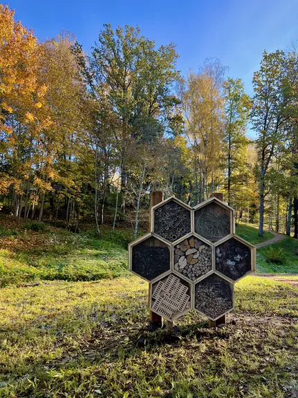 Improvement works on the Aizkraukle walking trail “Daugavas takas” are ongoing – on October 10, an insect hotel was installed along the trail.