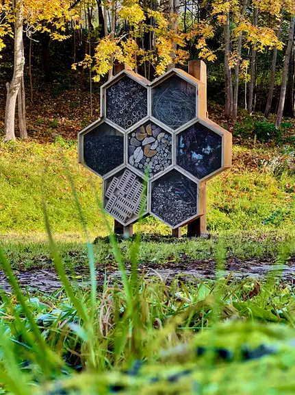 The idea for the insect hotel arose from the intention to create a specially designed structure that would serve as a shelter for various insects – for example, solitary bees, ladybugs, and others. Insect hotels help maintain the natural balance, as the insects living in them pollinate plants and reduce the number of pests, thereby improving the ecological health of gardens and the surrounding environment.