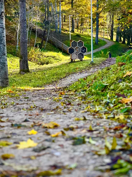 The insect hotel is located at the beginning of the trail, near the Aizkraukle Secondary School building, at 5 Draudzības krastmala.