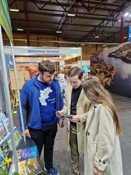 Parodoje pristatėme naujausią informacinę medžiagą ir maršrutus, metinį svarbiausių renginių planą, taip pat suteikėme galimybę, naudojantis virtualios realybės akiniais, nuotoliniu būdu apsilankyti Aizkrauklės savivaldybėje ir aplankyti net 30 turizmo objektų. Argi ne stebėtina būti Ķīpsalos parodų salėje, o virtualioje realybėje stebėti ramius Dauguvos vandenų platybes ties Aizkrauklės piliakalniu ar Dauguvos ir Persės senslėnius prie viduramžių Koknesės pilies griuvėsių?