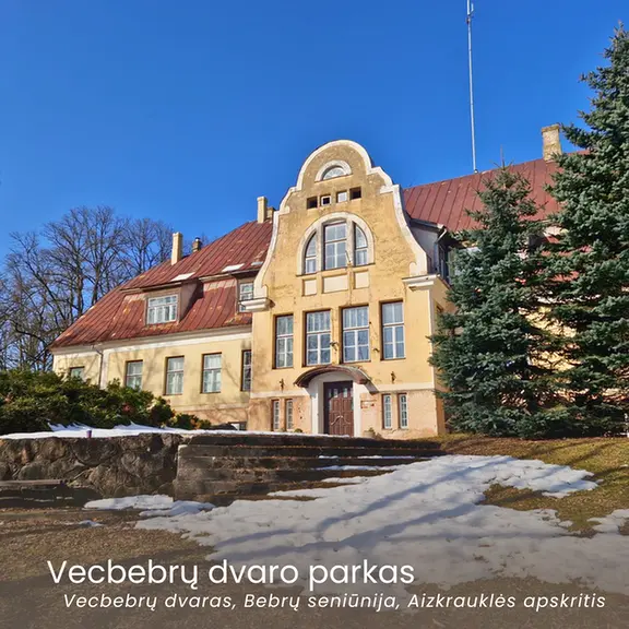 Vecbebrų dvaro pastatas buvo pastatytas XIX a. antroje pusėje klasicizmo stiliumi. Nors 1905 m. jis buvo sudegintas, vėliau atstatytas vadovaujant architektui V. Bokslafui. Parkas yra puiki vieta ramiems pasivaikščiojimams – įspūdingas pastatas harmoningai papildo kraštovaizdį.
