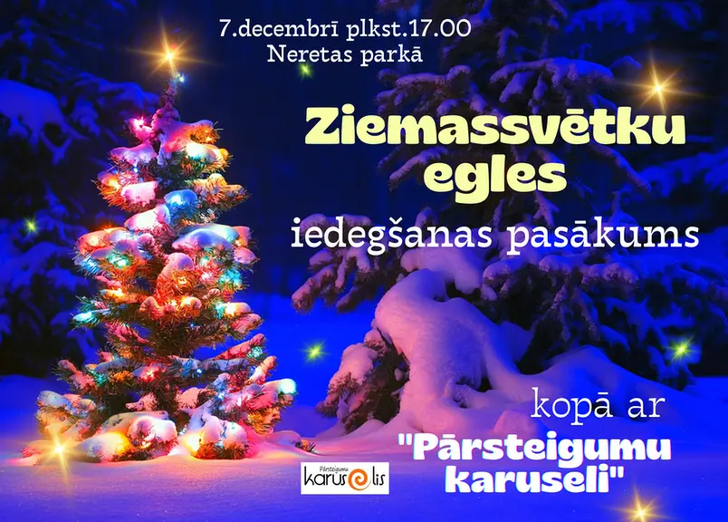 7. decembrī plkst. 17.00, Neretas parkā, Ziemassvētku egles iedegšanas pasākums kopā ar “Pārsteigumu karuseli”.