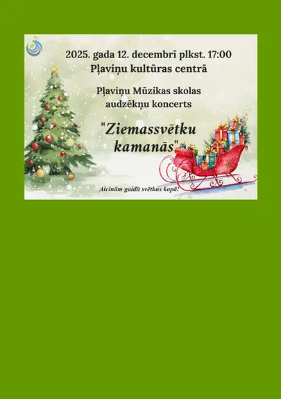 12. decembrī pulksten 17.00, Pļaviņu kultūras centrā – Pļaviņu mūzikas skolas audzēkņu koncerts “Ziemassvētku kamanās”.